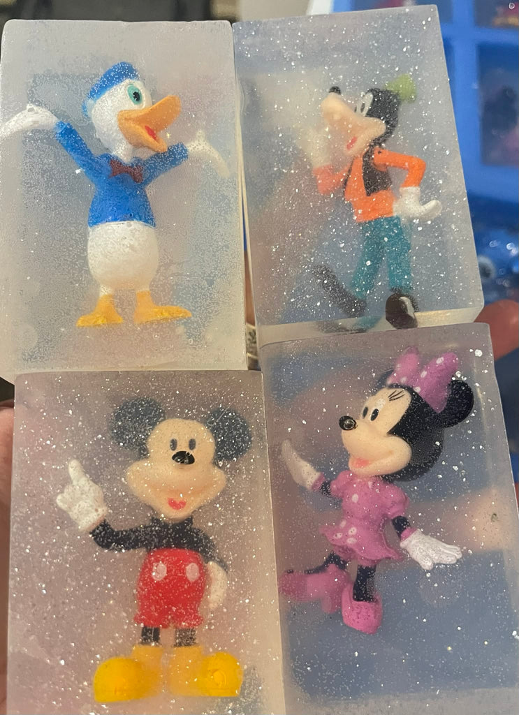Un savonavec la souris la + populaire et ses amis à la glycérine végétale et à l'odeur gourmande !! Chaque savon contient un ptit jouet. Toutes les jouets à l’intérieur sont choisis aléatoirement. Il est vegan, sans huile de palme et sans cruauté sur nos amis les animaux!
